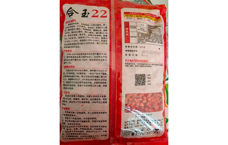 合玉22黑審玉品種生育日數120天左右,積溫2400℃左右